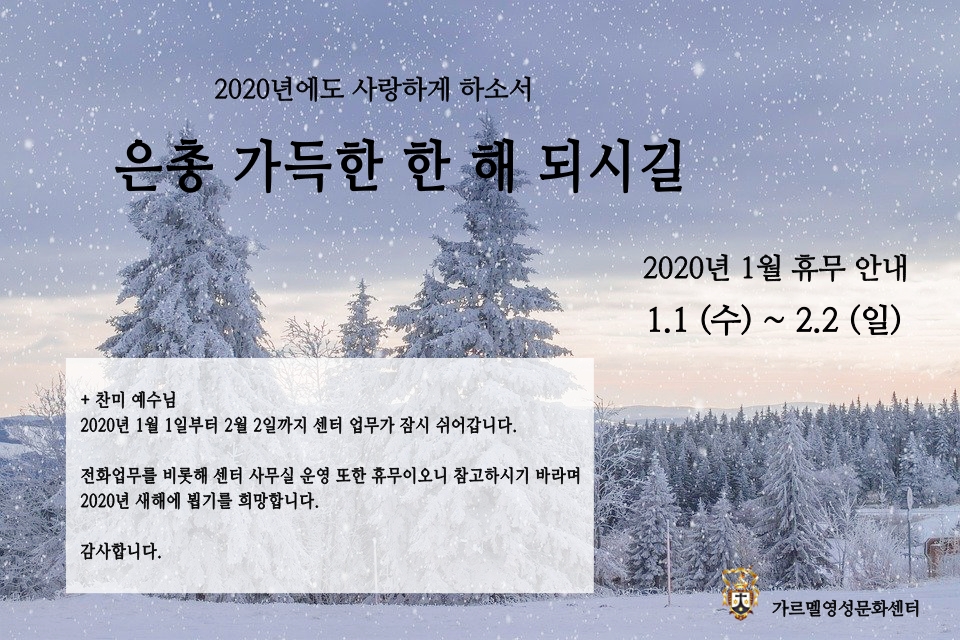 °¡¸£¸á¿µ¼º¹®È¼¾ÅÍ 1¿ù ÈÞ¹« ¾È³»ÀÔ´Ï´Ù.